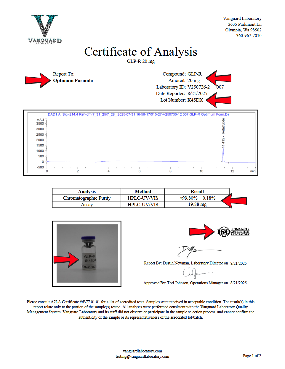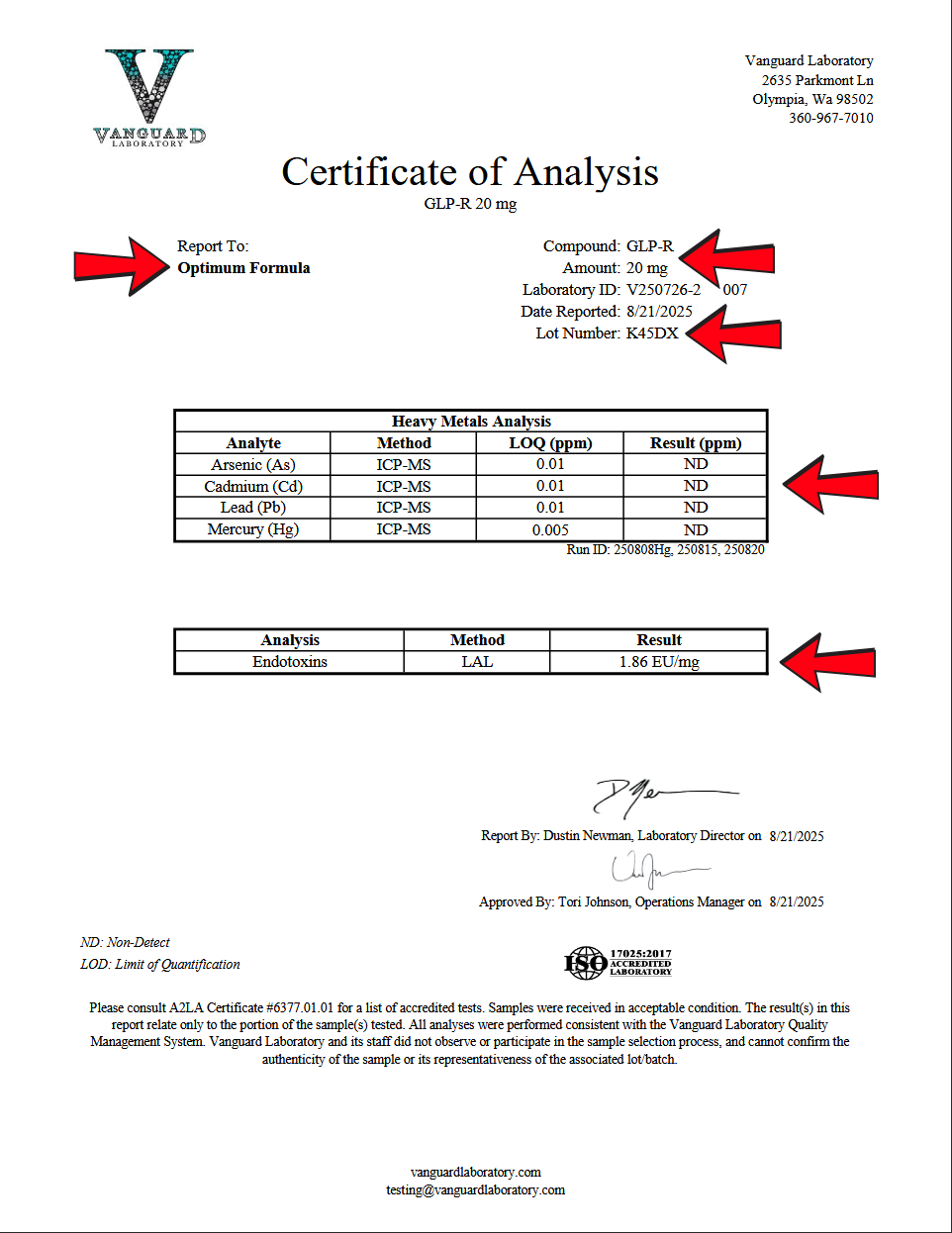 Independent ISO-Certified Testing – Each batch is tested through Vanguard Labs, an ISO-certified facility trusted for precision and reliability.